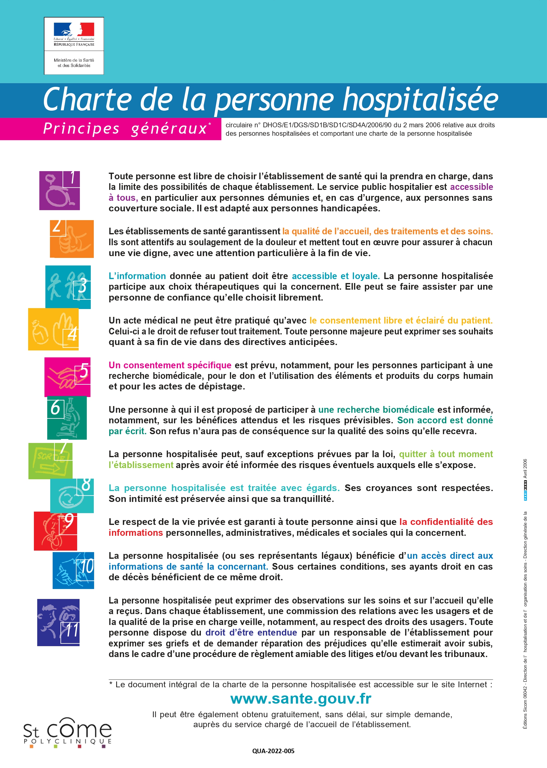 La Polyclinique, toujours engagée dans le respect des droits des patients, adhère à différentes chartes dont la principale est la charte de la Personne Hospitalisée